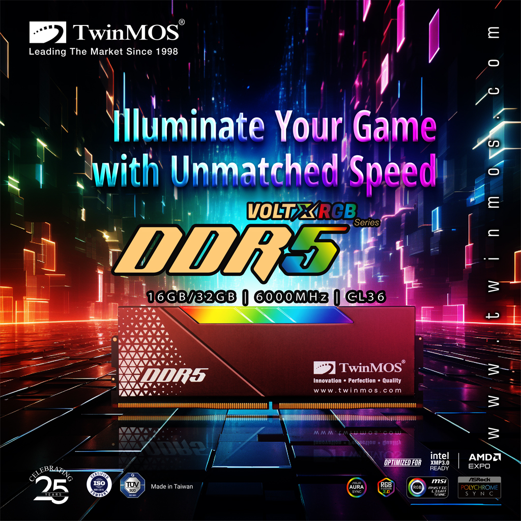 Mémoire RAM TwinMOS VOLTX RGB DDR5 U DIMM 6000 MHz 32 Go CL36
